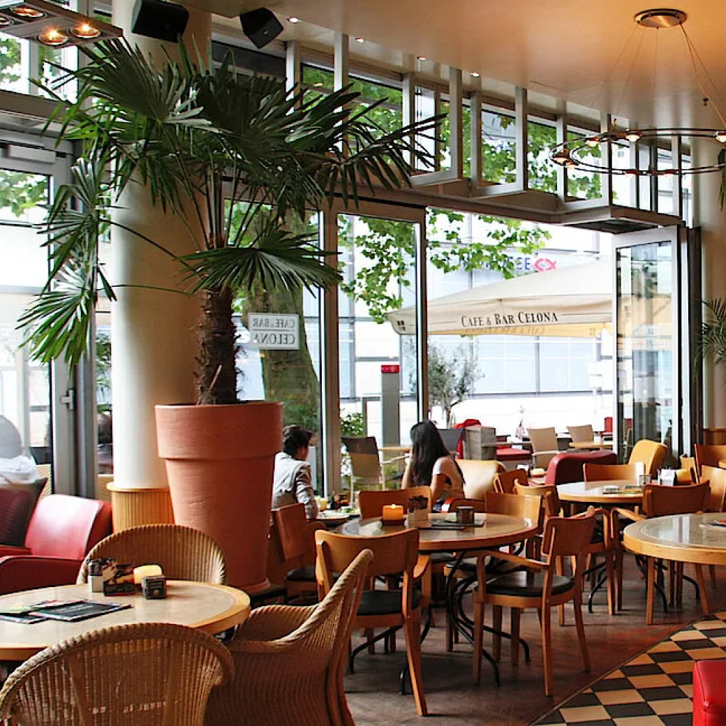 Vielfältige Cafés und Restaurants direkt um das Gebäude.